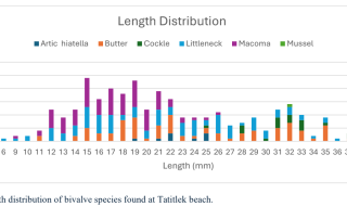 In the 1990s, the CRRC conducted extensive surveys of subsistence shellfish beaches with support from the Exxon Valdez Oil Spill Project, identifying habitat conditions and seeding beaches with clams and cockles. Only a few sites—near Tatitlek, Port Graham, and Chenega—showed long-term promise. With new seeding techniques and predator control strategies available, this project revisits those same beaches to determine whether they remain suitable for shellfish enhancement. In summer 2023, APMI and PSI researchers surveyed three historically important beaches—Tatitlek, Beyond Dick’s (near Port Graham and Nanwalek), and Passage Island. Each site was systematically flagged, mapped, and sampled using randomized quadrat sampling to quantify shellfish populations, while sediment cores and GPS-referenced data were collected to assess habitat suitability. Drones were also used to capture aerial images where weather allowed. In total, 23 quadrats were sampled at Tatitlek, 32 at Beyond Dick’s, and 25 at Passage Island, covering intertidal areas between -2 and +2 tide levels. The data are now being used to generate GIS-based population density and habitat maps for each site, which will be shared with tribal communities as tools for conservation planning and sustainable harvest management. By revisiting and updating these surveys with modern technology, the project lays the groundwork for future outplant and enhancement efforts, ensuring that culturally important shellfish resources can be restored and sustained for local communities.