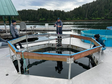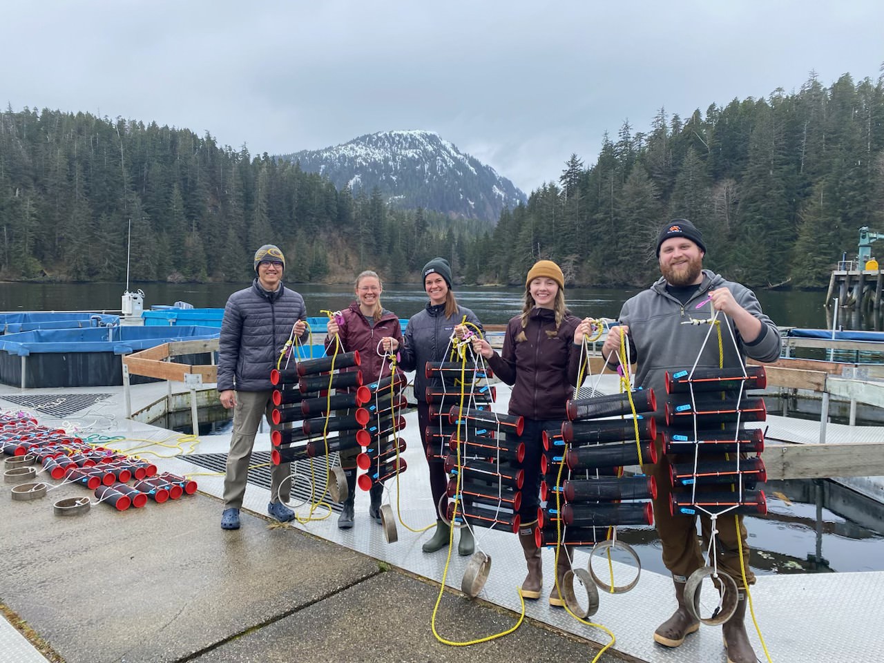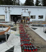 This project is testing whether tumble cage culture, widely used elsewhere to improve oyster shape, size, and yield, can be adapted to Alaska’s challenging conditions. Tumble cages use tidal and wave energy to gently mix oysters, reducing labor, discouraging predators like sea stars, and improving shell quality without mechanical tumblers. However, prior Alaska trials failed due to “over-tumbling,” which damaged oysters and gear. To address this, the project team—including engineers, biologists, and oyster farmers—designed custom Alaska-specific cage mounts that dampen and fine-tune cage motion, making the system more resilient in rough waters. As of spring 2024, nine cage arrays with 60 tumble cages and over 45,000 oysters were deployed at partner farms Salt Lady and Hump Island. Arrays include cages equipped with temperature loggers and accelerometers, alongside control cages to compare growth, morphology, and biofouling against standard culture methods. Early subsampling began in June and July, with growth, morphology, and environmental data under analysis. While logistical issues prevented deployment at Kawuu Oyster Company, plans are underway to establish a version 2 research farm in Hoonah. The project also emphasizes workforce development: Ostrea Marine partnered with the Tlingit and Haida Youth Employment Services program, hosting a local youth trainee, and supported a NOAA Hollings Scholar whose senior thesis will be based on project data. By trialing gear across diverse farm conditions, the initiative will produce best-practice recommendations on tumble culture’s viability in Alaska, with the potential to significantly reduce labor costs and improve oyster production outcomes.