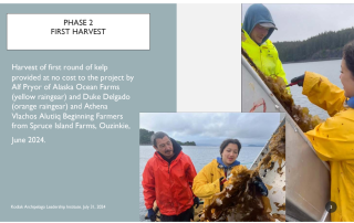 Mothers of Millions (MOM) is developing a mobile, organic-certified seaweed harvesting and processing platform to help farmers in Southcentral Alaska overcome logistical and economic barriers in bringing kelp from remote farms to market. During the 2025 harvest season, MOM processed kelp from multiple farms in Prince William Sound and Southeast Alaska, shifting from freezing kelp to stabilizing it for agricultural markets to build stronger ties with new buyers. The project demonstrated that kelp yields can vary widely across farms and years, requiring flexible processing approaches, while also advancing organic certification: all partner farms submitted paperwork and completed inspections, with certifications expected by fall 2025. Next steps include completing a final report and refining the mobile platform to expand its reach for future harvests, supporting scalable, on-water processing solutions that strengthen Alaska’s mariculture industry.