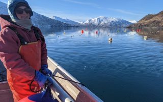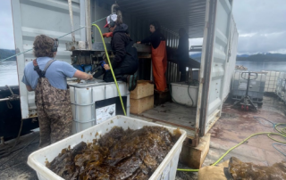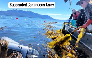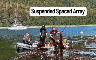 Sea Quester Farms is testing new approaches to improve food-grade, commercially viable bull kelp cultivation at their farm near Juneau, Alaska. The project compares growth on two types of arrays—surface arrays tethered at the water’s surface and benthic arrays anchored to the seafloor—while also testing continuous versus interval seed spacing along grow lines. The goal is to better replicate bull kelp’s natural conditions, where it grows in smaller groups on rocks rather than densely on suspended lines, a setup that has caused problems for commercial scaling. Working with the Native Conservancy, Spruce Root, and other Sustainable Southeast Partnership communities, the team will share findings to inform Alaska’s kelp farming practices.