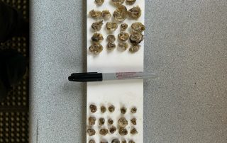 This project expands on earlier breeding work (JIP #23) by producing and evaluating elite hybrid oyster families specifically suited to Alaska’s colder growing conditions. Pacific Hybreed researchers are leveraging their long-term broodstock repository and genotyped adult oysters from multiple genetic lines to create both single-hybrids (best-performing first-generation crosses) and double-hybrids (crosses of unrelated elite hybrids known for superior performance and resilience). So far, researchers have successfully conducted full diallel crosses, generating 25 hybrid and 5 purebred lines. Juveniles were subdivided into replicates, measured for size and weight, and deployed at NOAA’s Little Port Walter Biological Research Station and Seagrove Oysters for field evaluation. These trials run in parallel with monitoring of families produced during the previous JIP cycle, creating a multi-year dataset on oyster growth and survival in cold-water environments. Next steps include analyzing summer growth and survival data, selecting top-performing families, and advancing them toward commercial seed production. By identifying and propagating the most resilient and productive genetic lines, the project aims to provide Alaskan farms with locally optimized oyster seed, improving consistency, survival, and industry profitability.