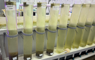 This project is building Alaska’s first commercial-scale capacity for gametophyte seeding of Sugar kelp (Saccharina latissima), a method offering more consistent densities, genetic traceability, and potentially stronger growth than traditional meiospore-based hatchery techniques. The team has established a new gametophyte lab with incubation systems, maintaining cultures from multiple parental groups, clonal male and female stocks, and mixed cultures from Jakalof Bay. Early experiments showed that lower-density gametophyte cultures achieved significantly higher growth rates, though sporophyte reproduction was not observed. The team also developed practical biomass measurement methods and identified density control as a key driver of growth, while technical challenges limited temperature testing in the first phase. Next steps include experiments on reproductive success and direct seeding, supported by the development of a laboratory wave tank and additional incubator space. The project feeds directly into a follow-on Seed Quality Improvement project, which will extend lab research and fund outplant trials. Ultimately, this work will establish Alaska-specific gametophyte protocols, expand seeding capacity, and enable more cost-effective, reliable kelp cultivation statewide.