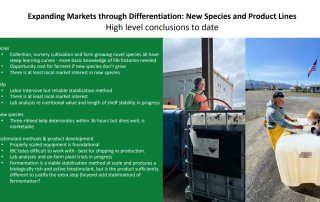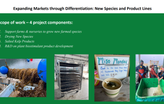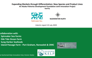 This project addresses the imbalance between Alaska’s growing supply of farmed sugar kelp and current market demand by focusing on species diversification, product differentiation, and market expansion. Building on lessons from earlier stabilization and processing trials, the work supports four farms and two nurseries in cultivating three additional kelp species, expands salting trials and product testing for gourmet and specialty food markets, and develops seaweed-based plant biostimulants for Alaska growers. By linking farming and processing innovations with differentiated products and diverse markets, the project aims to strengthen the value chain and accelerate the development of a resilient Alaska seaweed industry.